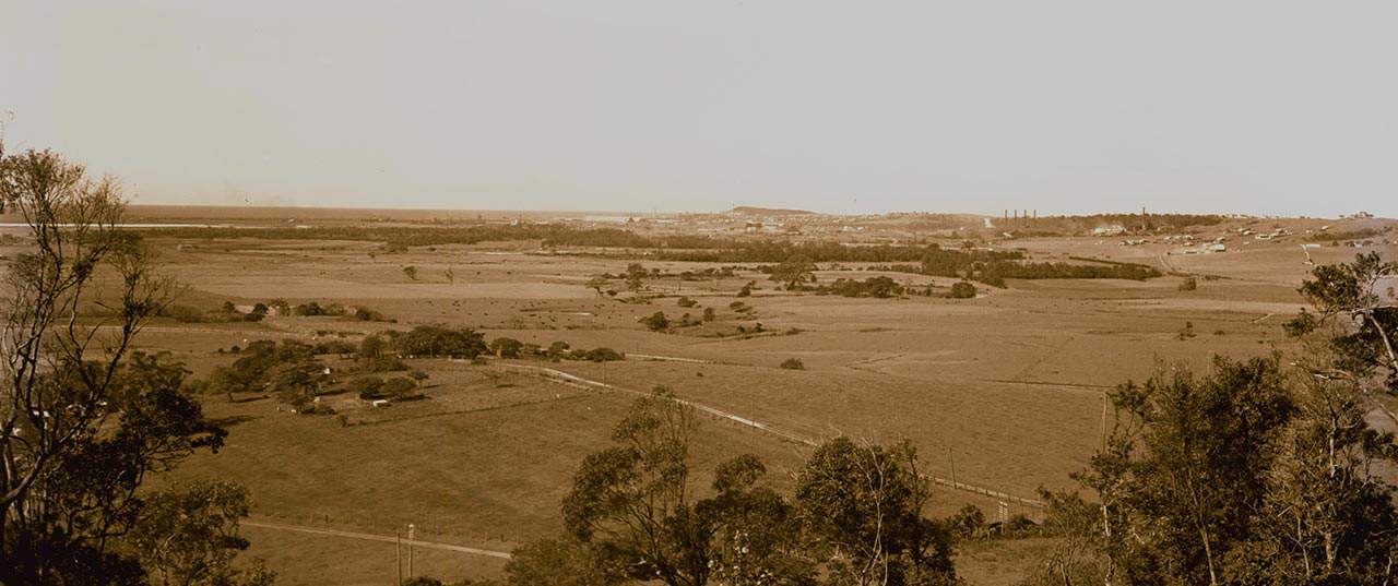 Metal manufacturing had begun in Port Kembla in 1908, when the Electrolytic Refining and Smelting Company opened the first copper processing plant in Australia. The metal industry of Port Kembla developed further in 1927 when the Lithgow-based Hoskins Iron and Steel Company moved to Port Kembla to be closer to the sources of their coke and easy transportation. The new firm of Australian Iron and Steel (AIS) was formed with three other metal manufacturing companies in 1928. When the Great Depression struck, BHP took the opportunity to consolidate the Australian Iron and Steel industry. BHP had been running Australia’s only other iron and steel plant at Newcastle since 1915 and the financial difficulties of the time resulted in AIS becoming a subsidiary of BHP in 1935. The 1930s were a time of great expansion for BHP, particularly at Port Kembla where over the four years to the end of 1939 BHP had doubled the steel output. Their acquisition of coal mines at Bulli and Mount Keira in 1936 and 1937 gave BHP a total workforce of 5000 in the Illawarra, over 10 percent of the district’s population. BHP’s investment during the 1930s was an important factor in the development of Wollongong as an industrial centre. Because of the increased importance of AIS, which had merged with BHP in 1935, a new administration building had been built at the company’s Wollongong works. It was also decided to build company guesthouses and a function centre for important visitors and executives. The site they chose was an exposed south-easterly facing slope behind Figtree, Mt St Thomas and the steelworks. Cecil Hoskins, the managing director of AIS was expecting the site and buildings to be a prestigious showpiece for the company. The location of Greenhill Estate was clearly chosen so that a visual connection was established from the buildings to the steelworks at Port Kembla.